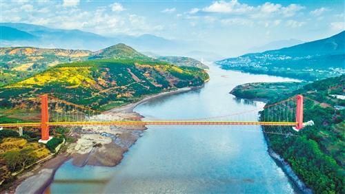 圖為一條凌空跨江的油氣管道。張曉天攝(中經(jīng)視覺(jué))