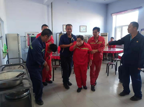 永和縣偉潤(rùn)燃?xì)庥邢薰窘豢谡痉e極響應(yīng)公司安全管理精神,為了提高員工應(yīng)急能力,進(jìn)行了一次人員中毒現(xiàn)場(chǎng)模擬演練。12月10日下午17:30分,與每天一樣交口站員工此時(shí)正在食堂享用晚餐,突然兩名員工感到胃部不適,相繼出現(xiàn)嘔吐,應(yīng)急小組組長(zhǎng)(副站長(zhǎng))立即命令所有人員停止用餐,隨機(jī)啟動(dòng)交口站食物中毒應(yīng)急預(yù)案。通訊組(資料室)立即撥打120急救電話求救,并向公司應(yīng)急辦公室匯報(bào)現(xiàn)場(chǎng)情況。組長(zhǎng)安排無異常人員對(duì)疑似中毒者進(jìn)行監(jiān)護(hù)和清理現(xiàn)場(chǎng)嘔吐物工作。并通過電話按120人員指示對(duì)病人進(jìn)行前期救護(hù)。集合所有用餐人員清點(diǎn)人數(shù),防止其他人員出現(xiàn)病狀無法發(fā)現(xiàn)。安排人員對(duì)食物及嘔吐物進(jìn)行取樣備查,對(duì)庫(kù)內(nèi)所有食材清點(diǎn)封存,保護(hù)好現(xiàn)場(chǎng),禁止無關(guān)人員進(jìn)出食堂。當(dāng)公司應(yīng)急領(lǐng)導(dǎo)到達(dá)現(xiàn)場(chǎng)時(shí)移交指揮權(quán),配合120急救人員將中毒人員送至救護(hù)車并到醫(yī)院救治檢查,應(yīng)急演練結(jié)束。